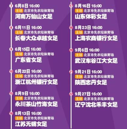 本赛季北京女足的11个主场安排。